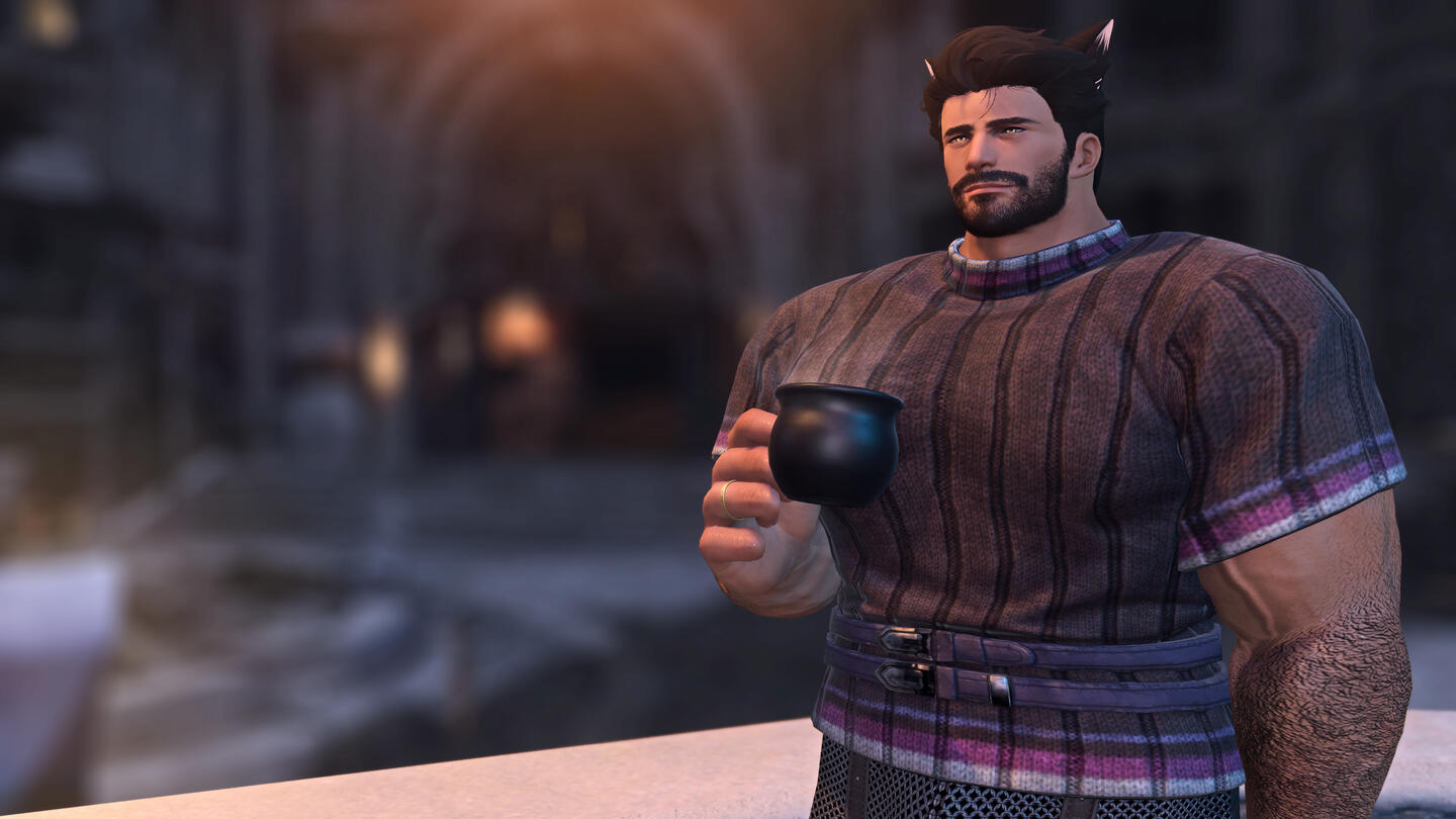 Thordar never set out to be a knight. Or a sellsword. Or anything that required getting up before dawn and wearing more than one layer of metal. He was born in Coerthas and raised at the forge, where most of his childhood was spent hauling coal, swinging a hammer, and learning how to dodge flying sparks with the reflexes of a seasoned monk...or a cat. By the time he was fully grown, he could lift an anvil one-handed and had the arms to prove it—which, as he often told people during his late night bar escapades, earned him a discount at the market more than once. He totally did not make that story up.When the Calamity struck and Ishgard started recruiting anyone who could walk and not trip over a sword, Thordar was drafted into service. What he lacked in training, he made up for with sheer stubbornness and an unexpected knack for light-based magicks—thanks, in part, to years of working with rune-inscribed weapons and prayer-blessed metals. They gave him a shield, a title, and a very uncomfortable tabard—which was quickly replaced with his own—and he made it work. Somehow, he went from village blacksmith to battlefield paladin without ever figuring out how to properly salute.